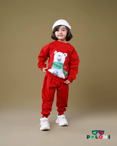 ست دورس و شلوار پولونی طرح خرس کریسمس