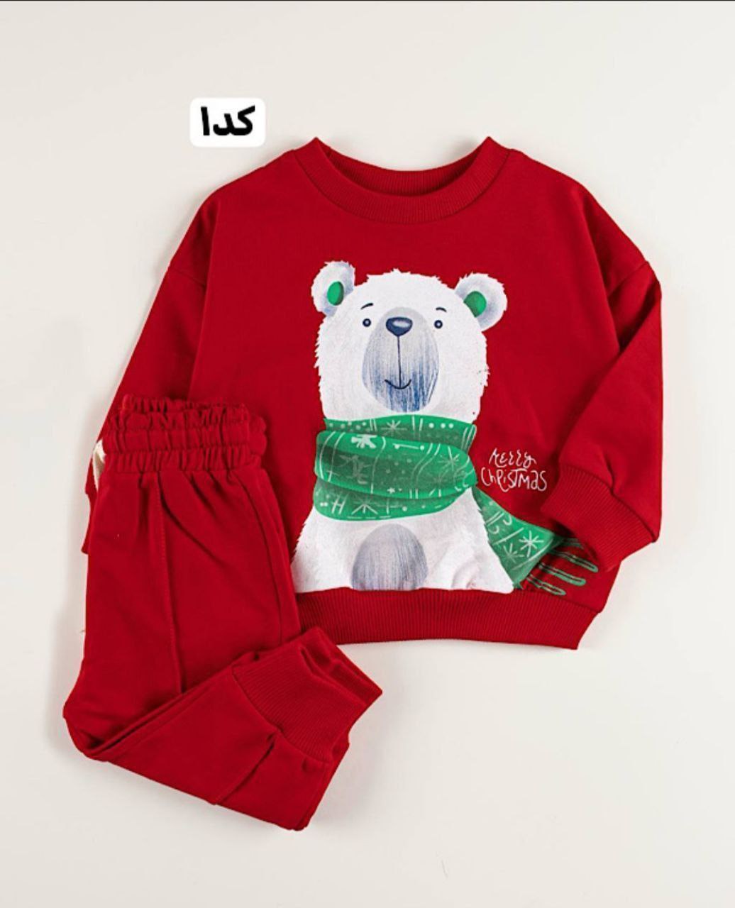 ست دورس و شلوار پولونی طرح خرس کریسمس
